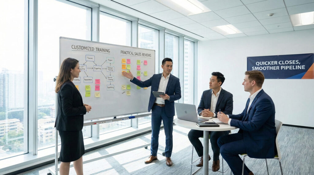 Our sales training and reviews are designed to help your team get better at what they do—from adjusting how they talk to different types of buyers to managing individual deals more effectively. We make everything practical, hands-on, and customized to fit your specific business needs, so you start seeing quicker closes, a smoother pipeline, and stronger overall results without wasting time on stuff that doesn’t help.